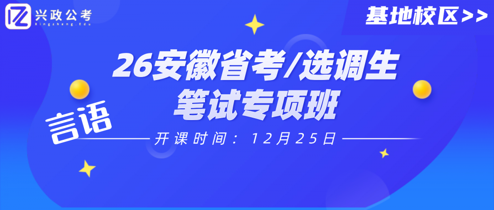 别再犹豫,把握26安徽省考/选调生笔试言语理解备考的黄金时期!12月25日,26安徽省考/选调生笔试专项班(言语理解)基地校区班,赶快报名加入我们,在系统学习中夯实言语理解根基,为笔试高分筑牢基础!