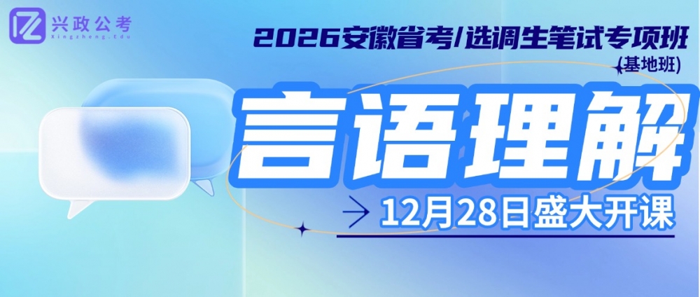 备战26安徽省考、选调生笔试,言语理解还在踩坑?主旨题抓不住核心、逻辑填空中招率高、双考答题节奏乱?12月28日,兴政公考26安徽省考/选调生笔试言语理解专项基地班正式开课,助你突破言语理解备考瓶颈,适配省考与选调生双考命题规律!