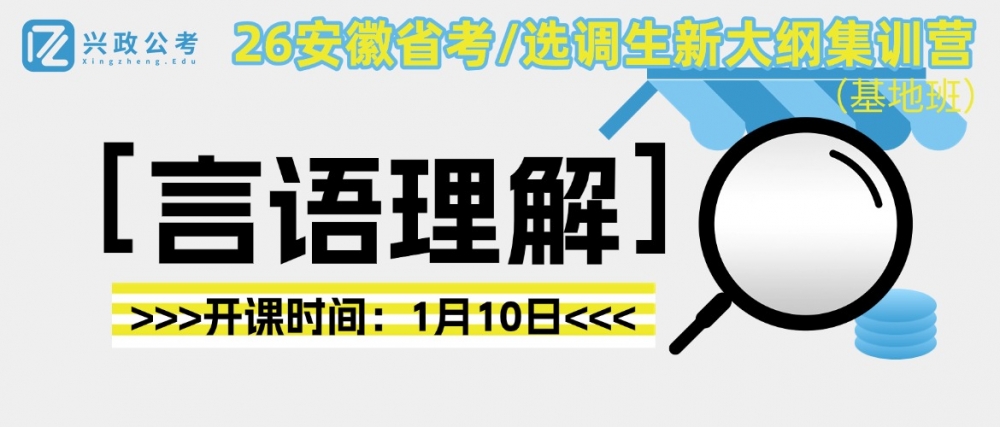 备战26安徽省考、选调生笔试,言语理解还在靠语感猜答案?文字海洋里抓不住题干主旨、词语辨析模棱两可频频丢分、双考模式下阅读速度迟迟提不上来?1月10日,兴政公考言语理解专项集训营(基地班)重磅开课,带你精准适配双考命题规律,一举突破言语理解备考瓶颈!