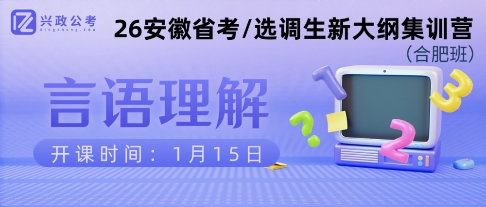 备战26安徽省考、选调生笔试,言语理解还在靠语感瞎选?文段里抓不住主旨核心、词语辨析模棱两可反复丢分、双考模式下答题速度始终跟不上?1月15日,兴政公考言语理解专项合肥班重磅开课,带你精准适配双考命题规律,一举突破言语理解备考瓶颈!