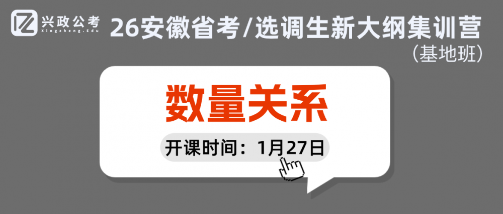 备战26安徽省考、选调生笔试,数量关系还在靠硬算硬拼时间?数字迷宫里摸不准解题方向、公式记混记错频频失分、双考模式下答题速度始终卡壳?1月27日,兴政公考数量关系专项集训营(基地班)重磅开课,带你精准适配双考命题规律,一举突破数量关系备考瓶颈!