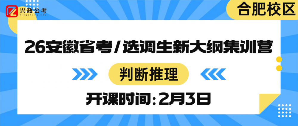 备战26安徽省考、选调生笔试,判断推理还在因图形规律摸不透、逻辑推理绕不清、定义判断抓不准、类比推理易混淆频频失分?双考模式下,判断推理板块的正确率与答题速度始终拉胯?2月3日,兴政公考判断推理专项集训营(合肥校区)重磅开课,带你精准适配双考命题规律,一举突破判断推理备考瓶颈!