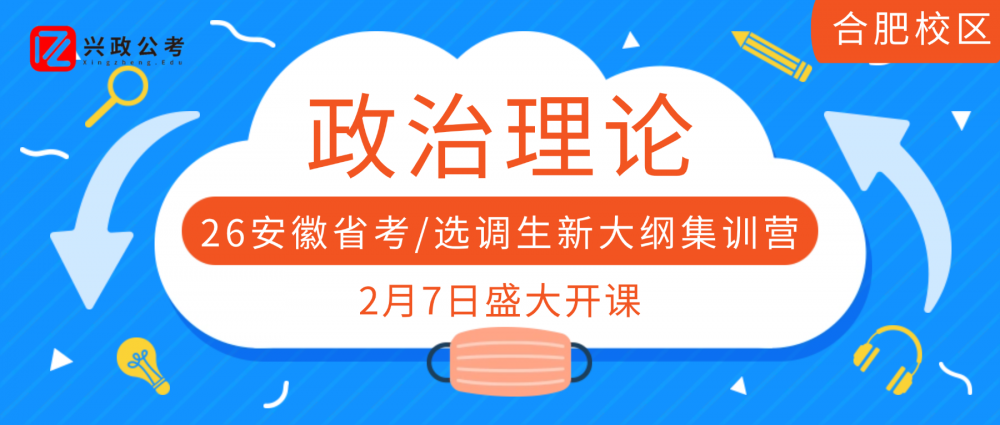 备战26安徽省考/选调生笔试,政治理论还在因政策理论记不牢、时政热点摸不清、主观题作答抓不准频频失分?双考模式下,政治理论板块的正确率与答题速度始终拉胯?2月7日,兴政公考政治理论专项集训营(合肥校区)重磅开课,带你精准适配双考命题规律,一举突破政治理论备考瓶颈!