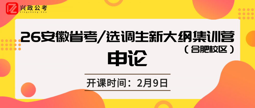 备战26安徽省考、选调生笔试,申论还在因立意不准、逻辑混乱、表达干瘪频频失分?材料阅读抓不住核心观点、公文写作格式频频出错、大作文立意与论证始终卡壳?双考模式下,申论板块的得分率始终上不去?2月9日,兴政公考申论专项集训营(合肥校区)重磅开课,带你精准适配双考命题规律,一举突破申论备考瓶颈!