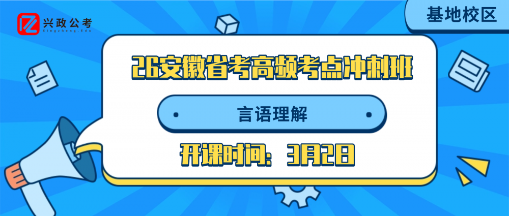 备战 26 安徽省考笔试,言语理解还在因主旨判断偏、逻辑填空错、语句表达乱频频失分?中心主旨抓不准、选词填空凭语感、语句排序理不清?备考中,言语理解板块正确率忽高忽低,成了提分路上的 “拦路虎”?3 月 2 日,兴政公考 26 安徽省考高频考点冲刺班(基地校区)重磅开课,带你精准适配省考命题规律,一举突破言语理解备考瓶颈!